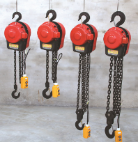 远看它,有着黑色的吊钩、红色的罩壳、长长的链条,像是一台手拉葫芦;近看它,有着大大的罩壳、可遥控的手柄、精密的线路,像是一台电动葫芦。它,就是DHS型环链电动葫芦
